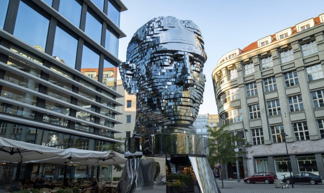 Që nga viti 2014, vizitorët e Pragës, qytetit të rrugicave barok, hijes mesjetare dhe kujtesës së pambarimtë, ndalen befas përballë një koke gjigante prej çeliku shkëlqyes që lëviz, thyhet, ribëhet, zhduket për t’u rindërtuar sërish në një proces të pambarimtë metamorfoze. Fare pranë stacionit të metrosë Národní, instalacioni kinetik i David Černý-t duket sikur shpalos në çelik pështjellimin e brendshëm të atij që, me një trup të brishtë dhe një shpirt të ngarkuar, arriti të kthejë ankthin në letërsi universale, Franz Kafka.