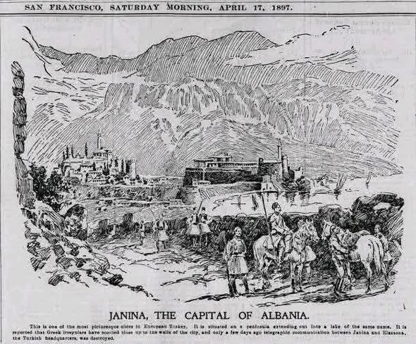 Gazeta e San Franciskos, The San Francisco Call, e botuar më 17 prill 1897, përfshinte një artikull të titulluar “JANINA, KRYEQYTETI I SHQIPËRISË”.