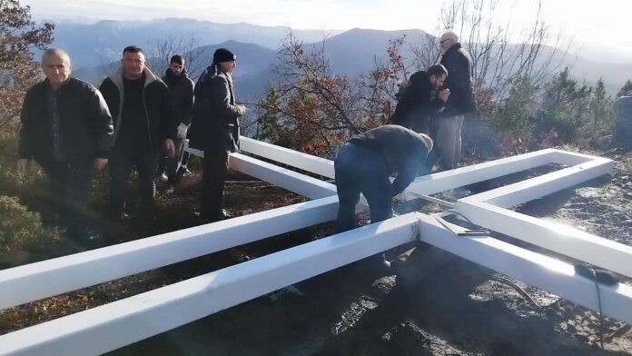 Transporti i strukturës metalike në atë terren të thyer ishte sfidë më vete. Çdo metër i fituar dukej si një betejë e vogël e fituar. Por kur pjesët e kryqit u bashkuan në tokë dhe më pas nisën të ngrihen drejt qiellit, lodhja u zëvendësua nga heshtja e thellë e atij momenti solemn.