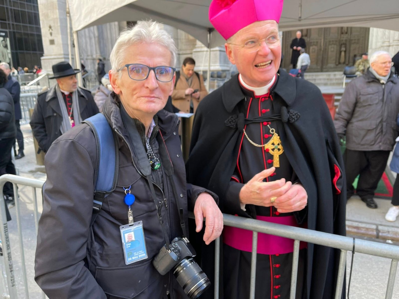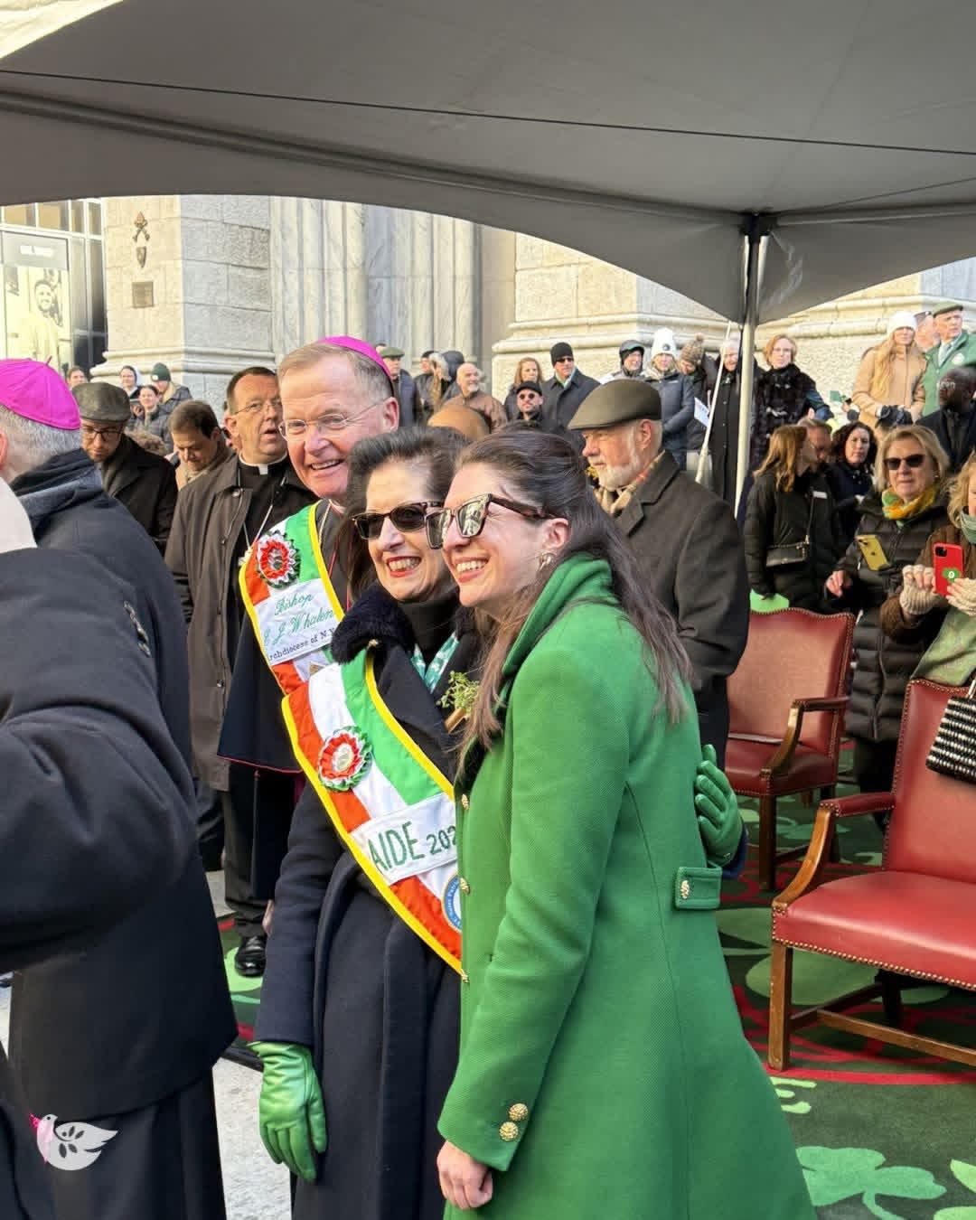 Në Katedralen e Shën Patrik-ut, në hyrje të saj qëndron Kryepeshkopi Ronald A. Hicks, i cili përshëndetet me të gjithë pjesëmarrësit me buzëqeshje të gjerë, madje provoi për pak çaste një kapelë jeshile.